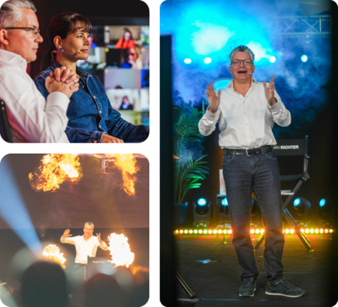 Damian Richter hilft mit seinem Team seit 15 Jahren Menschen zu einem außergewöhnlichen Leben und hat bis heute bereits mit weit über 600.000 Teilnehmern auf über 1700 Seminaren / Webinaren LIVE gearbeitet. Damian schafft es wie kein zweiter die Teilnehmer live vor Ort und digital mitzureißen. Die deutschlandweit bekannte Zeitung "Die Zeit" bezeichnet ihn sogar als den Coach der Coaches. Warum? Ganz einfach...