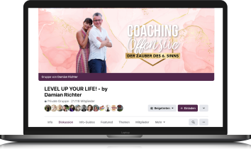 In der exklusiven Damian Richter Facebook-Gruppe kannst Du Deine Erfahrungen gemeinsam mit Gleichgesinnten reflektieren. Neue Freunde fürs Leben finden. Und wer weiß? Vielleicht findest Du dort sogar Deinen Traumpartner.