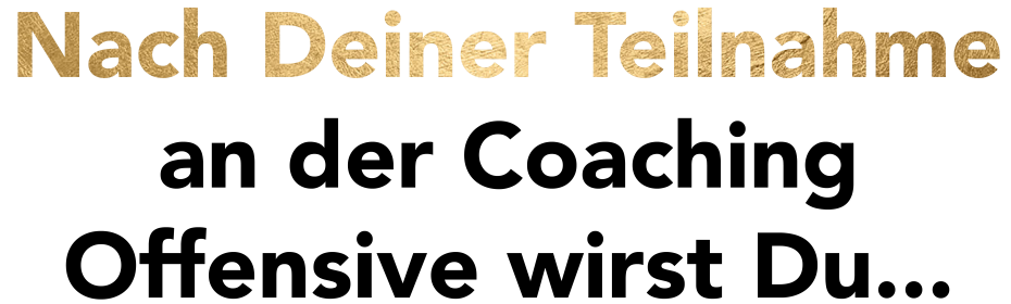 Die digitale Coaching-Offensive ist nicht irgendein Webinar oder ein Zoom Meeting mit ein paar Menschen. NEIN. Die Coaching-Offensive ist ein digitales premium live Event, in dem Du garantiert Deine alten Gewohnheiten und blockierenden Verhaltensweisen auflöst, Dein wahres Potenzial entfaltest und nachhaltige Veränderung in jedem Lebensbereich erreichst.